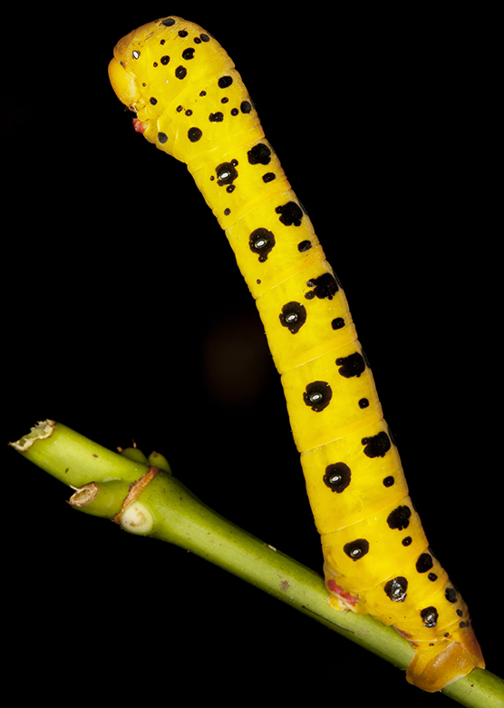 On an elevated root near the edge of Cooper Creek, a male Northern Stoney Creek Tree Frog – Ranoidea jungguy (Donnellan & Mahony, 2004) beams with bright-yellow virility, against the more subdued tones of the larger, brown female. Of similar intensity, a vivid yellow caterpillar of the Four O’Clock Moth – Dysphania numana (Cramer, 1779) stands chromatically and posturally proud on a branch of a Corky Bark – Carallia brachiata ((Lour.) Merrill, 1920).